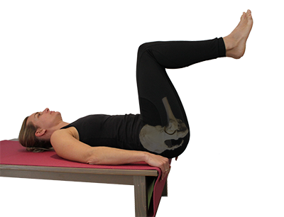 Man liegt auf einem stabilen Tisch und bringt dann das Becken etwas über die Tischkante hinaus sodass nur noch der oberste Teil der Beckenschaufel auf dem Tisch an der Kante liegt. Mit beiden Beinen im rechten Winkel angehoben beginnt man ein Bein nach dem anderen runter und wieder hoch zu bewegen und dabei auszuatmen. Man macht dies für etwa 30 Sekunden. Bringe das Becken danach wieder zurück sicher auf dem Tisch liegend bevor man vorsichtig aufsteht.